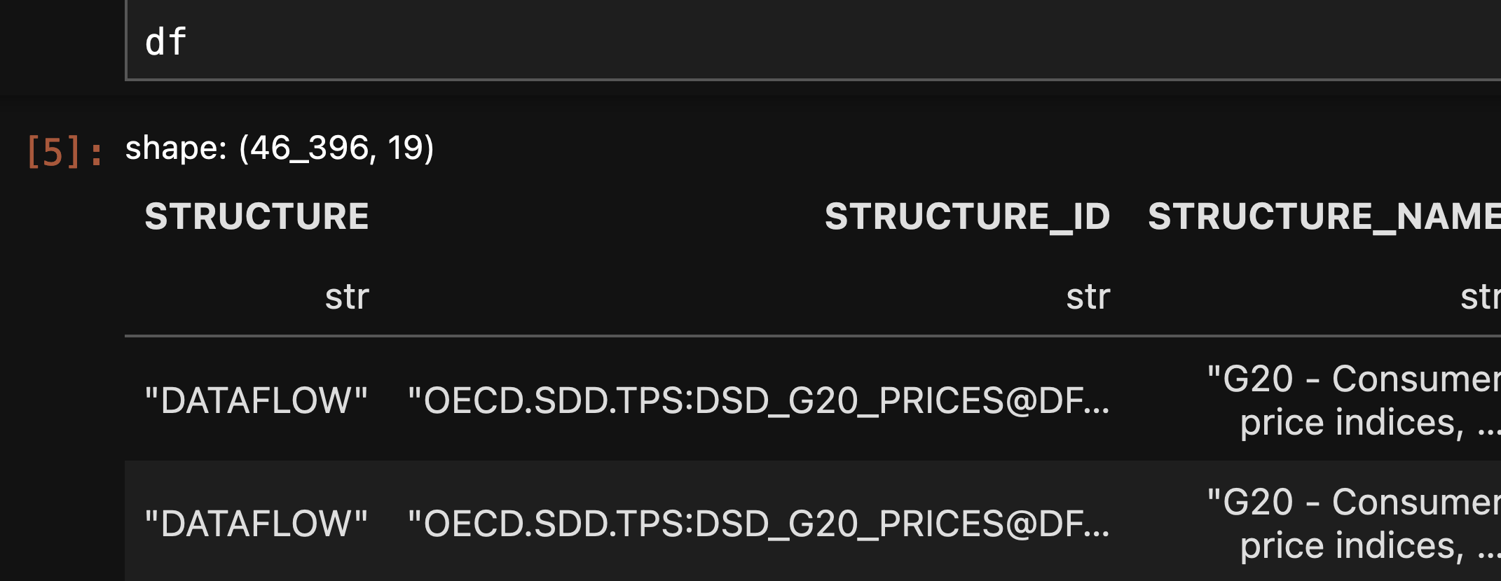 import polars as plWith that in place, we can then work with the CSV file that I downloaded from the OECD.